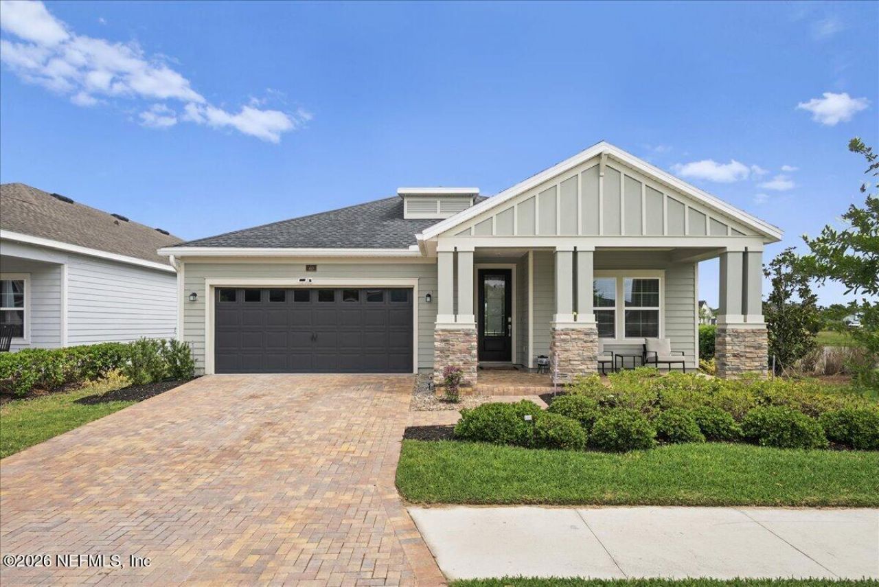Located in the sought-after Shearwater community, this move-in ready 3-bedroom, 2-bathroom home built in 2022 offers modern living and a functional layout. Situated on a pond homesite, enjoy water views along the side of the home with no direct neighbor on one side. The open-concept floor plan features a spacious living area with abundant natural light. A dedicated office and separate den provide flexible space for work, play, or guests. The screened-in patio is perfect for relaxing outdoors. Conveniently located near the community playground with easy access to top-rated St. Johns County schools, shopping, and dining. Shearwater amenities include a clubhouse, fitness center, lazy river, lagoon-style pool, and walking trails. Schedule your showing today.